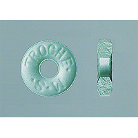 添加物:蔗糖、D-甘露醇、明胶、羧甲基纤维素钠、硬脂酸、硬脂酸镁、对羟基苯甲酸甲酯、甘草提取物、蓝色一号铝湖香精、阿拉伯树胶、糊精、丙二醇、绿茶粉、l-薄荷醇、乙基香兰素、香兰素